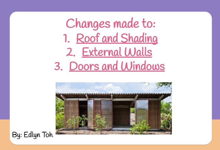 The main aim of this project was to suggest proposals to improve the 2nd Prototype S-House design. Findings and evaluations of Vietnamese Indigenous Architecture had to be studied in order to propose the influences and whether it can be adopted into a current contemporary house.