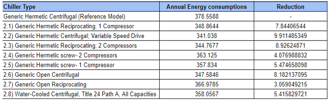 Analysis of different chiller types to see the best energy savings: