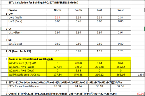 ETTV calculations of the building: